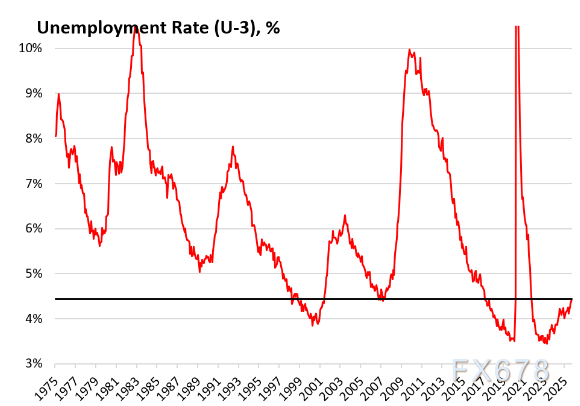 9月失业率(U-3)升至4.4%,虽仍处于历史低位,但较近年水平已有明显上升。