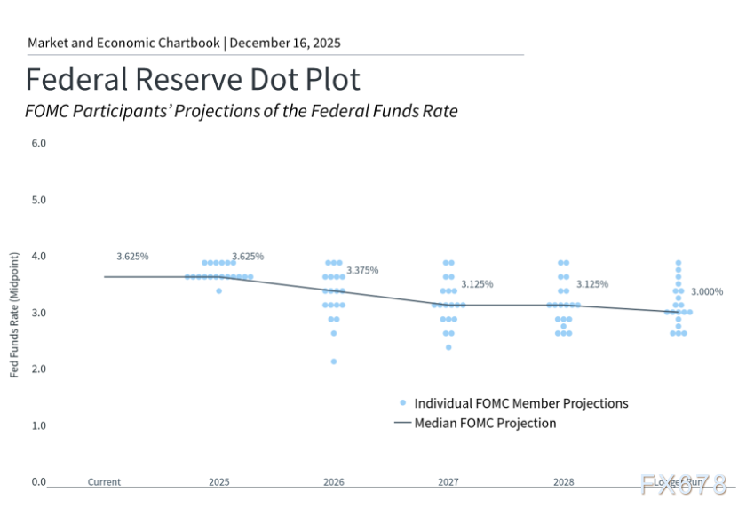 (点阵趋势图,暗示2026年还有一次降息,且整体中性利率偏向下行)