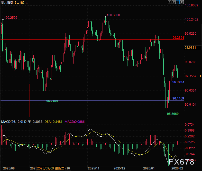 汇通财经APP讯——周一(2月9日)亚欧时段美元指数继续回调,目前交投于97.36,跌0.30%,白宫一再重申力挺强势美元,但全球投资者仍选择保持距离。